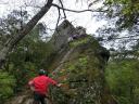| 【メンバー】 全体リーダー : A/Y (参加者18名) A班・・・CL:Y/I SL:K/Y S/O H/S Y/I N/U B班・・・CL:M/K SL:Y/Y I/K M/M M/I J/K C班・・・CL:A/Y SL:J/I C/O T/K H/A M/S 【コースタイム】 長若中学校8:50―法性寺駐車場9:22―胎内観音9:45―お船観音10:00―奥ノ院10:10―第一鉄塔10:25― 長若山荘裏11:30ー 一峰11:50ー二峰12:00―三峰12:45ー四峰12:55ー五峰13:05ー金精神社・文殊峠13:40― 兎岩14:30ー林道15:00ー長若山荘 15:20 【コメント 】 般若山~釜ノ沢五峰とあまり聞きなれない名前に興味をそそられて参加しました。 登山道入口は秩父札所32番の法性寺からでした。奥ノ院は断崖絶壁の上にあり鎖を伝って登りました。 上は5,6人が立てるほどの広さで眺めがよかった。あまり人が入ってないせいか登山道が荒く危ない箇所が 何か所かありました。 鎖場も何か所かあり、とくに兎岩はスリル満点でした。また、いかり草、貝母、にりん草などの 草花を楽しむことができました。 後半は雨が降ったりやんだりで、雨具を出すほどでもなく無事下山しました。 Y/I記 |