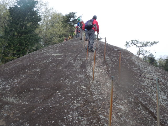 巨大な岩には手すりが掛けられているが・・(慎重に降りて来いよ~)