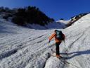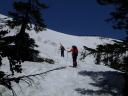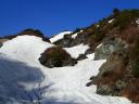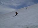 [コメント] 3年前に体調が悪く頂上までは何とかたどり着いたものの雪倉岳北面の滑走が出来 なかったことでのリベンジ「雪倉 岳北面スキー滑走ツアー行」を計画し、今年の連休 も白馬・栂池をベースにしての山岳スキー、ヒュッテ生活と蓮華温 泉からのツアーに 出発しました。 前夜、信濃大町のN邸に集合してごろ寝、翌早朝発、S学園ヒュッテに後半の生活 物資をデポし天狗原・振り子沢経由で蓮華温泉着、ビールで乾杯、温泉入浴と、ここ まではいつもの行動パターンです が、今回は途中ハプニングがありO氏が枝にスキー を引っかけ転倒、沢へ転落しました。幸い膝から下が沢水に浸か った程度で特に怪我 はなく(スキー板は翌日破損していたのが判明)大事には至らなかったものの、その ショックで雪 倉岳行きを辞退、他の二人は雪の悪状態と帰りの雨を警戒して蓮華温泉 止まりとしたため結局、翌日の雪倉岳はN氏 との2名での山行となりました。 3日、無風快晴、最高の条件です。午前4時45分発、薄暗い中を兵馬ノ平へ向けて 滑 走、シールを付けて峠まで登行、下降して雪で覆われた瀬戸川を渡り小屋の朝弁当 をいただき順調に雪倉岳への登り となりました。 積雪量は他の地域の融雪が激しい 割には平年並みですが、やはり雨の影響で斜面に縦溝ができ、ス キー滑走には全く適 さない状態です。まず沢の真ん中を詰めていきますが、このルートは過去に5、6回は 登っている のでよく知ってはいても上部の台地に出るまでは途中2か所の急登があり とてもシール登行で行ける状態ではなくスキ ーを担いでのアイゼン登行となります。 上部台地からも頂上は遙かに遠く、さらに風邪気味でハァハァ・ゼェゼェ、休み 休み のシール登行で山頂到着が午後1時過ぎ、胸が苦しく最悪の状態で、おまけに山頂の 岩にカメラのレンズをぶつ け破損しなんとも情けない前半の登りとなりました。 雪倉岳山頂は白馬岳からのガイド・ツアーの人もいて20人程の 賑わいでした。 さぁ、期待の北面滑走です、若干の雪面縦溝はあったもののうまくルートをとること によって充分に楽しみながらの 滑走が出来大満足でした。ほどなく朝日岳からのルート と合流、瀬戸川にかかる橋を渡り、蓮華温泉に登り返 し13時間半の長丁場の一日を終 了しました。 4日、来年の山を五輪山に決め、蓮華温泉を後にして4時間で後半生活 のヒュ ッテに戻り、あとは飲んで食べてダラダラの生活、6日に下山しました。 S/A記 |