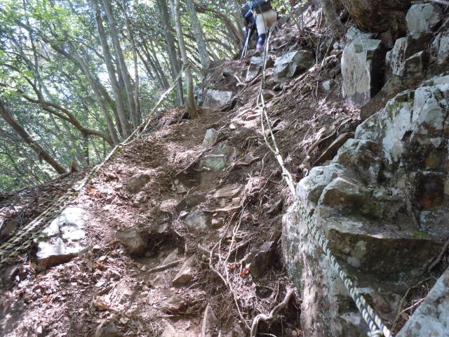 なかなか手強い。クサリ・ロープ・急坂が、ずっと続いています