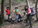 | 【期 日】 2015年5月4日(月) 【メンバー】 L:T,K M,U (Y,K) T,M (計4名) 【コースタイム】 両毛線桐生駅9:20⇒(タクシー)⇒9:50駒形登山口10:05→水場11:20→肩の広場12:00→カッコソウ保護地 →肩の広場12:10→12:25鳴神山(桐生岳)頂上(昼食)13:00→仁田山岳→椚田峠13:30→カッコソウ北保護地 →椚田峠13:45→赤柴登山口14:10→(林道)→駒形登山口14:40→15:05吹上BS15:25⇒桐生駅15:55 T,K 【コメント】 非常にめずらしいといわれるカッコソウが見ごろということで急きょ訪ねた。 登山口までは交通の便も悪く時間がかかったが、新緑の登山道は気持ちよく花もたくさん咲いていた。 足元に現れる花を覗きこみ、遠く近くに点在するツツジや藤、桐の花に感嘆し、足の進みはいつになく遅い。 やがて頂上直下の鳴神岳神社(肩の広場)に着く。そのまま保護地に行ってみるがここには数株しか咲い ていなかった、ちょっとがっかりして広場に戻る。 頂上で昼食後、北保護地に向う。こちらはすばらしかった!樹林の斜面一帯にピンクのカッコソウが咲いて いた、永年の保存活動の成果です。 椚田峠(裏の肩)にもどり赤柴登山口方向に下山する。 T,M |