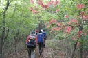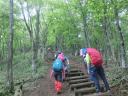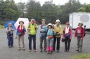 | 【期日】2015年5月16日(土)曇り時々小雨のち晴れ 【メンバー】CLTK,YI,TM,MK,HA,YY,KW,ST,TH,MI,NU, IS,YS,SW,IS,TK,YS,TK,SF (計19名) 【コースタイム】紅葉台入口8:45〜紅葉台展望LH 9:30〜三湖台9:45 (休憩15分)〜五湖台=足田和山11:10着(昼食休憩30分)11:45 〜天神社12:55〜秋葉神社13:18〜道の駅かつやま13:33着 【コメント】数日前から傘マークが16日だけ付いていて、ベランダからの姿が目の前に望めることに期待していたのに、思い通りにいかない。 連休明けのせいか車も少なめで予定より早く登山口に着く。 軽いストレッチの後紅葉台展望レストハウスに向け「東海自然歩道」のコースに入り向かう。時折の小雨も山道をぬかるませることもなく、大した支障はない。三湖台までの道端にヒトリシズカやマムシグサ、ルイヨウボタン等々Yさんに教えて貰いながら、私たち以外とは出会わないことを幸いにガヤガヤと進む。 三湖台は今までの雰囲気とは全く違った広々とした整備途中とも思える展望公園になっている。雨も上がり北東側眼下に西湖や河口湖が望める。左側遠くに精進湖が霞んでいる。河口湖の向こうの山塊は三ツ峠山から御坂山地か、雲海から姿を見せてくれ気持ち良くさせてくれる。反対側の富士山は厚い雲の中で、裾野の青木ヶ原樹海は深い緑が続き、所々から霞か霧か白雲が沸き立つように昇っているのが興味深い。 ここから足和田山(五湖台)まではアップダウンは幾つかあるが、全体としては歩きやすいなだらかな道が続く。前方の木々の間から突然霧が湧きだし、それがスーッと消えた後、葉っぱの1枚1枚が超高感度の解像画を見ているような若葉が目に飛び込んで来る。 足和田山は木々に囲まれていて見通しがきかず、隙間から辛うじて裾野が見える程度。昼食休憩のあと天神社、秋葉神社経由で河口湖湖畔の道の駅かつやまへと下山する。 東海自然歩道として整備したのは何年前か不明だが、その後の整備不良で歩き辛い個所が多々あり、不満と言えばこの点と、今回の山行で一番の期待の富士山の姿が望められなかったことである。チラリゆらりと赤いけだしをチラ見させ、思わせ振りなままで結局顔を見せて貰えなかった。 TH記 今回出会えた主な山草他 ヒトリシズカ、イカリソウ、マイヅルソウ、ズミ、マムシグサ、チゴユリ、 ユキザサ、ギボウシ、クサボケ、ホウチャクソウ、ルイヨウボタン他 |