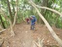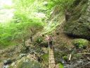 | 【期日】 3 2015年5月29日(金) 【メンバー】 CL/ YY MI NU 【コースタイム】 7:40秩父鉄道 白久駅 8:00谷津川館(ビール購入) 8:50〜9:05 城山コース登山口 9:35〜9:40 800m 10:05〜10:10 950m 10:35〜10:40 1100m 11:30〜12:10 熊倉山1426.5m 13:50 熊倉山登山口 15:08 武州日野駅 (NU記) 【コメント】 いつだったか、ネットで、“熊倉山は男らしい山”という言葉を見つけた。地図を開くと、和名倉山の隣のピークである。派手さはないが、凛としたたたずまいに奥秩父の深さを感じた。今回Yリーダーが城山コースから登頂し、日野コースに下山の計画を立ててくれました。秩父鉄道白久駅から林道を一時間歩き、城山コース登山口から急登につぐ急登を一時間登り、稜線に出ると、アップダウンと、両側が切れ落ちたヤセ尾根とうるさい木の根と、行く手をふさぐ大岩がありました。滝子山に似ているが、こちらの方がまだ楽(Yリーダー)との話。頂上は鉄板に手書きで書かれた標識が。眺望はありませんが、祠が祀られ、酉谷山へ続く登山道が続いていました。下山の日野コースは笹平のバイケイソウ、ハシリドコロの群生と三又からの苔むした渓谷美。奥多摩のロックガーデンに似ていました。緑も色濃くなり、ガクウツギやフタリシズカ、コアジサイが咲き乱れ、オオバアサガラ、マタタビの大木の多さに驚きました。標高差1100mを休憩を入れて4時間で登り、奥秩父の渋さと厳しさと奥深さを三人で分かち合いました。 行きに買ったビールはもちろん、下山後ののどをおおいに潤してくれました。 (NU記) |