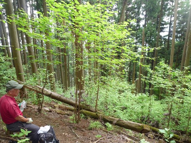しょっぱなの急登で休憩中
