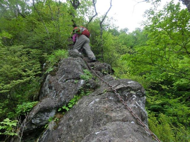 鎖のある岩場は安心して登ります