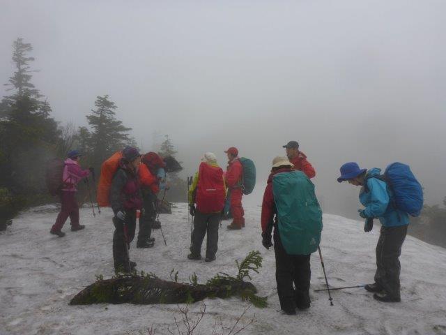 雪渓の上で休憩