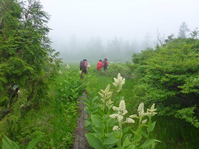 中の代 コバイケイソウが咲いて美しい湿原を歩く