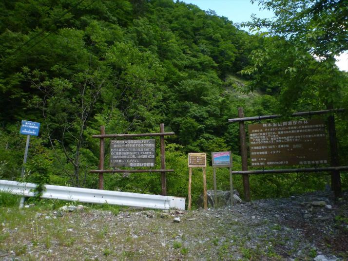 04曲がり角に材木資源保存林の看板なにイヌブナだと