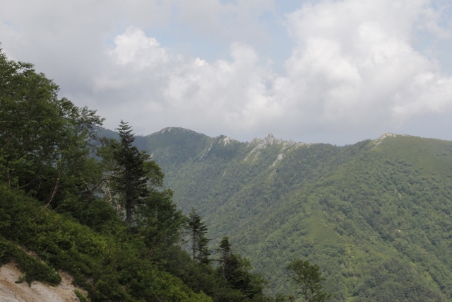 だいぶ上がってきた さっきまで歩いていた稜線が見えている