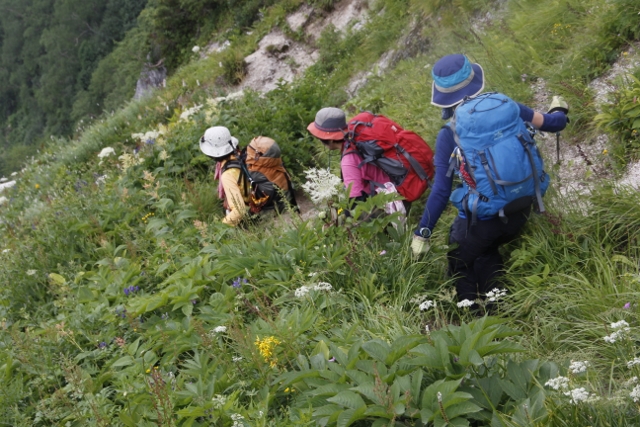 お花畑を下る