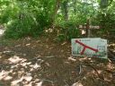 | 長坂清水の道標がミズナラ大木の根元に立てかけてある。水場への下り口は倒木の根が隠して不明瞭であった。土埃が立つ急な斜面だが薮が払われ、鋸目がついている小木を掴んで下る。急な崖下の水場に着いたが水は枯れかけていた。水場からさらに下流までロープが伸びている。下れば水がとれるのか?ダイクラ尾根で水はまず取れないと思った方がよいようだ。Qさんも納得? 登り返してヨツバヒヨドリが咲く水場分岐をたった | ||||||||||