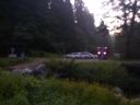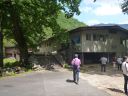 | 飯豊山荘に到着して入浴する。源泉に最も近い温泉と宣伝しているが洗い場は1つで大人数には向いていない。我々の後で入ってきた数人もお互いに順番待ちをしていた。入浴後は生ビールで乾杯、食堂でバスの時間待ちをさせてもらった。 小国駅行バスは定刻に到着した。下車した人たちの大部分は天狗平ロッジの方に登っていく。駐車場にもテントを張っていたところをみると飯豊山荘は観光客が専ら利用しているものと思われた。余裕をもって飯豊に登るには飯豊山荘に泊まったらどうだろうか |