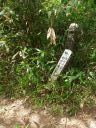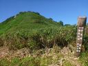 | 展望がないアップダウンを繰り返して牛ヶ岩山(1401.8m)に着いた。三角点峰だがやはり薮の中、これで三点測量ができたのだろうか?頂上からほんの少し下ると人声が耳に入る。曲がり角で電話中の作業服を着た男性の前を通った。刈り払いをされているとは思えない、登山路整備の装備であったがひとまず感謝・・・ | ||||||||||
