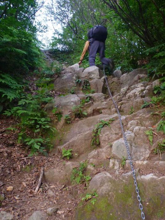 28長い鎖が岩崖場に