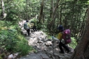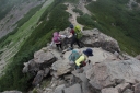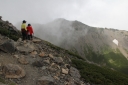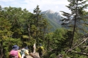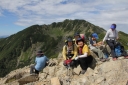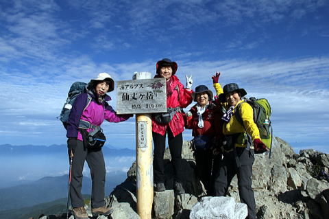 | 【期 日】 2015年8月11日(火)〜12日(水)前夜発 【メンバー】 L/K.W、S.T、S.F、Y.U 【コースタイム】 8/10〈前夜〉毎日アルペン号・竹橋22:40発 8/11〈一日目〉 南アルプス戸台口仙流荘前5:00着、6:05発(南アルプス林道バス)⇒北沢峠着7:00 北沢峠発7:10→5合目(大滝頭)分岐9:00→小仙丈ヶ岳11:05→仙丈ヶ岳12:55 →仙丈小屋13:40 8/12〈二日目〉 仙丈小屋4:45発→仙丈ヶ岳5:05、5:20→仙丈小屋5:35(朝食) →仙丈小屋発7:00→仙丈ヶ岳7:35→仙丈小屋分岐8:25→小仙丈ヶ岳9:30 →5合目(大滝頭)分岐10:25→北沢峠着12:10 北沢峠13:12発(南アルプス市営バス)⇒広河原(乗り合いタクシー)⇒甲府 (記録;Y.U) 【コメント】 メンバーのうち三人はいくつもの高い山を登っているが、Uは初めての三千メートル級の山で あった。 登りが続くルートと覚悟はしていたが、やはり5合目分岐からは口数少なくなるほどきつさを 感じた。空気がやはり薄いのかなあと思う。 小仙丈ヶ岳では、夏休み期間ということもあり次々と人が登り集まる。 一日目 遠くがもやって絶景はお預けとなる。 小仙丈ヶ岳からは稜線歩きで小仙丈沢カールと藪沢カールを見ながらの歩き、余裕があれば 両側に目も行くが、足元ばかりに目が行く。頂上まであと少し! ゆっくり歩みでも時間は十分あった。気持的には楽であった。 仙丈ヶ岳、初めての三千メートルの山。 「うーん凄い!きれい!」ここまで来なければ味わえない自然の醍醐味だった。 二日目 メンバー二人が頂上で日の出を見る。 下山の前に四人で頂上を目指す。360度の視界に感動! 昨日の靄がうそのように、中央アルプス、北アルプス、南アルプス、富士山と贅沢な展望で あった。 昨日の天候しかり、いつでも見られるわけではないので目にしっかり焼き付けると同じくらい 写真もたくさん撮った。 下りでは絶景に士気もあがり、たくさんの高山植物を見て心も躍った。それをメンバーと共感 できることも最高の楽しさであった。 本当に最高の山でした。 (Y.U=記) |
