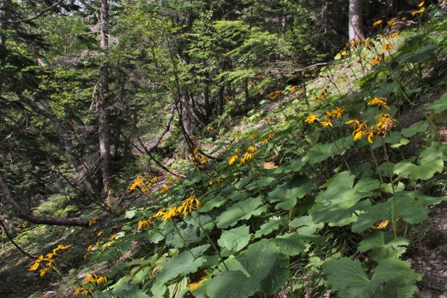マルバダケブキの群落 大きな黄色い花が印象的