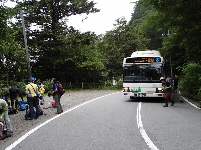 三ツ峠登山口でバスを下車