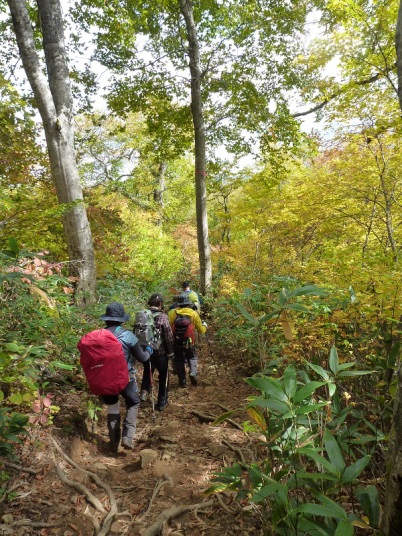 紅葉の中を下山