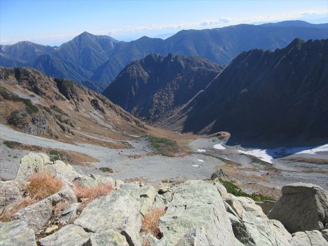 振り返ると涸沢カールと山々が
