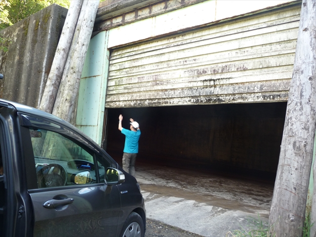 無事下山 駐車場のシャッターを上げるとトンネルであった