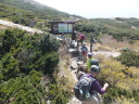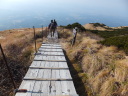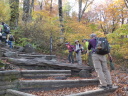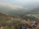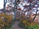 | 【コメント】 百名山の一座の伯耆大山と、四十数年前に泊った島根の三瓶温泉にある県最高峰の三瓶山に登った。 Iさんの故郷、島根にお墓参りを兼ね大山に登るというのを聞き、手を挙げ実現した。二日とも天気も気温も 登山日和で、三日目の松江観光も含め、満足満足の山行だった。 大山は、米子空港着が8時半で、登山口発が10時になったため、展望は今一つで、日本海も望めなかったが、 紅葉真っ只中の中、一合目から山頂まで、標識があるのでとても登りやすかった。木段もちょうどよい間隔であり、 階段 ! いやだなぁ ! という気はおこらなかった。 下りの元谷からの登山道は、すれ違う人もほとんどなく、山の自然いっぱいの中、歩くことが出来た。 二日目の三瓶山は、西ノ原の定めの松から登った。子三瓶、孫三瓶、女三瓶、男三瓶山と周回するコースで、 最後の男三瓶山山頂から歩いた山々を望むことが出来た。 男三瓶山からの下りは、一面のすすきの原でそれはそれは見事だった。急な岩混じりのガレ場を慎重に下り、 分岐に着いた時にはホッとした。 (N/M記) |