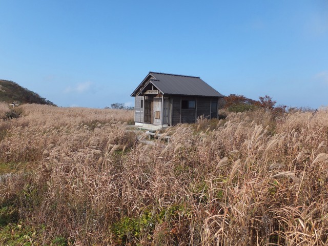 ススキが素敵です!山頂避難小屋に到着