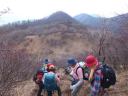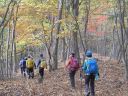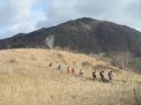 午前8時甲斐大和駅着。予め予約してあった9人乗りジャンボタクシー2台と5人乗りタクシー2台に各自分乗し総勢24名で湯ノ沢峠へ向かった。 30分程で峠に到着。Yリーダーから山行にあたっての注意点が話され、準備運動の後、3班に編成して8時50分出発した。天気は上々、気温も予想に反して暖かい。 まずは大蔵高丸まで30分ほどの山歩きだ。途中、動物除けの鉄扉が数箇所設けられていた。広々とした草原を歩く。出だし好調。お花畑と言われている所で春先にはきっと色んな花が咲きほこっていることでしょう。9時20分大蔵高丸到着(標高1781m)。富士山が見えた!その偉容に圧倒される。周囲の山々と比較してもその大きさは格別だ。山頂は傘雲が架かっている。この景色もなかなか見られない。暫し山頂からの眺望を楽しみ記念撮影。 此処から30分ほどでハマイバ丸に着くが展望は無い。背の高い笹薮の中を潜るように歩く所が続いたほかロープが無い急な下りもあったりして結構気を使った。天下石、米背負峠と経由して大谷ヶ丸に11時20分到着。快調なペースで来た。昼食休憩。 充分に休憩後11時55分コンドウ丸経由大鹿峠に向け出発。鮮やかに色づいたモミジが印象的だ。尾根沿いに見える紅葉も綺麗だ。紅葉に染まった樹林帯の中を歩く。山道は落ち葉で埋まっており足元に注意しながら歩いた。コンドウ丸には50分程で到着、曲り沢峠を経て大鹿山をまくようにして大鹿峠まで来た。(14時)途中、他の班は大鹿山山頂を覗いて来たため時間差が生じた。ここから景徳院まで約1時間の行程。15時5分景徳院到着。 この寺は武田勝頼が戦に敗れ部下にも離反され落ち延びてきて自刃した場所で、 勝頼享年37歳。正室北条夫人(北条氏康の娘)享年19歳、嫡男信勝16歳。 景徳院からバス便もあったが歩くこととし甲斐大和駅まで30分ほど車道沿いに歩いた。 16時Yリーダーから解散の一声。お疲れ様でした。 KU 記 |