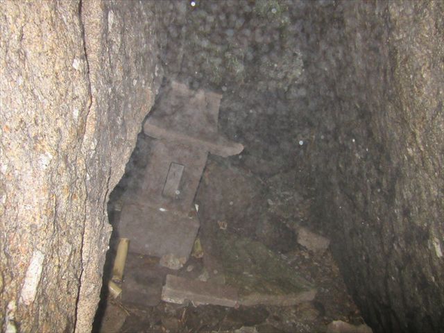 岩のほこらは結構広く神様が祀られています、しばしお邪魔します