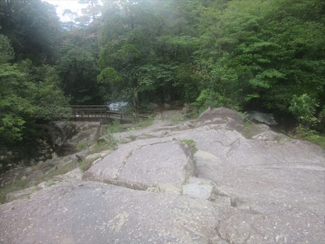 この岩の上を抜けて、さつき橋を渡ればもうすぐバス停