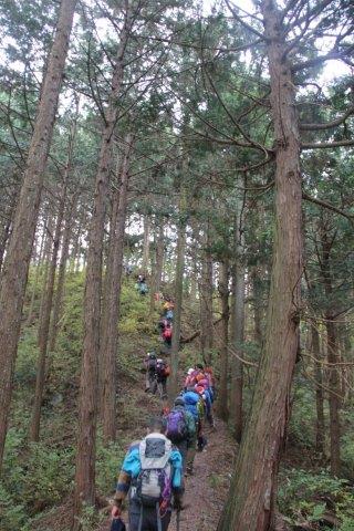 杉林、檜林の中の急登