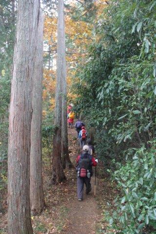 檜林とシキミの木の間を