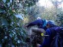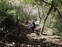 [期 日] 2015年12月19日(土) [メンバー] S.A N.K 他7名(会員外) [コースタイム] JR逗子駅9時集合―(バス)―長柄交差点前9:30〜(森戸川林道コース)〜10:20林道終点10;35〜 (連絡尾根)〜10;50稜線〜(南尾根縦走コース)〜11:38観音塚〜12:00(昼飯)〜(仙元山ハイキングコース)〜 12:50仙元山13:15〜13:30葉山教会 [コメント] お勧めのハイキングコースです 標高150〜200mの馬蹄形に連なる通称「三浦アルプス」、4,50分〜2時間半程の8つの主要コースがあり、それぞれ 分岐コースとして枝葉に分かれ、どこからでも簡単に登って下って楽しめる山歩きコースとなっています 池袋から湘南新宿ラインで逗子駅へ、今回はバスで3つ目の長柄交差点前から歩き始めました。 総勢9名での山登りですが、本日は9月の個人山行・剣岳で同行した親友のS氏が経営する葉山の蕎麦屋「茶や辻」 が最終到着点です。 まず、森戸海岸と森戸神社間の海に注ぐほぼ平らな「森戸川林道コース」を50分程歩き終点に到着しました。天気 快晴、海のそばにこんなに素晴らしい渓流があるとは思えないところです。 一休みして、急な15分程の連絡尾根を辿り、稜線へ到着。途中、見晴らしが悪い中にも木々の間から富士山を見る ことが出来ました。 後は「南尾根縦走コース」を観音塚へ、尾根は小さい上り下りの連続で、笹薮の狭い箇所もありましたが、やがて湘 南の海が見え始め、遠く伊豆大島も望めました。良い天気の為かハイカーが多く数組とすれ違いました。 昼食の後、最終コースの「仙元山ハイキングコース」で仙元山着、良く整備された尾根ですが、207段の急な下りの階 段は要注意でした。山頂はベンチもトイレもあり、眺望が素晴らしいところで、雲で全容は見えなかったものの富士山 と眼下に広がる湘南の海、江ノ島と葉山の町、早速持参のワインで乾杯です。 ここからは15分程で葉山教会がある登山口へ、登山は終了ですが、さらに歩き海岸通りへ、長者ヶ崎海岸で休憩後 、フグ食忘年会で締めとなりました。 |