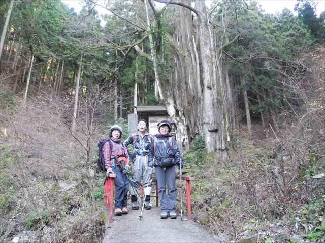 軍刀利神社の御神木・桂の大木前にて