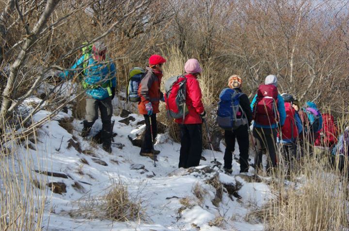 雪は多くなくても慎重な足取りが要求される下り。