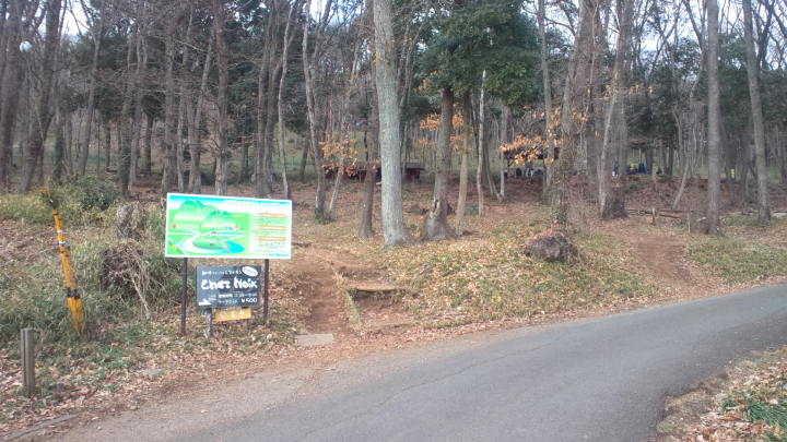 南側(巾着田側)の登山口。 ここから車道を離れ登山道に入る