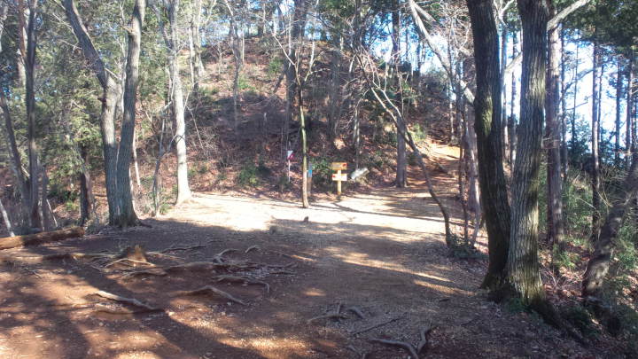 左は高指山方面への巻き道。山頂へは右。
