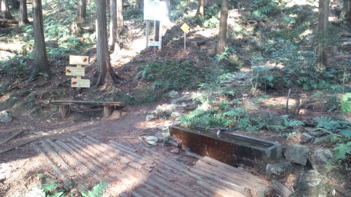 男坂コースを下りぎみに進むと、水場の様な所に着く。