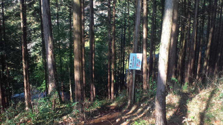 ベンチの前を少し進むと左へ踏み跡が分かれ、