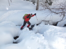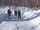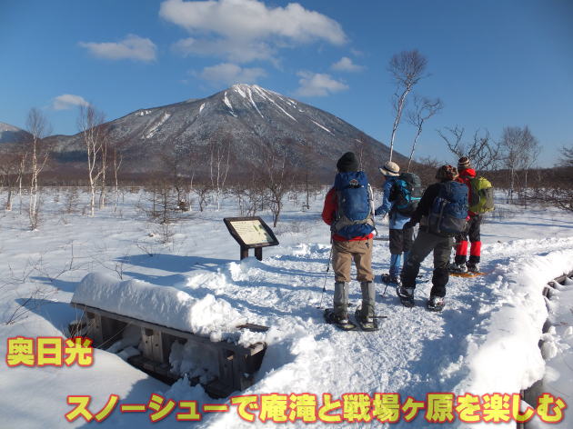 【期日】2016年1月31日(日曜日) 【メンバー】CL:M/I M/K I/K K/Y H/Y 【コースタイム】朝霞駅6:30出発 🚙 (車)🚙 🚙 赤沼茶屋9:00着 赤沼出発9:20→赤沼分岐9:32→戦場ヶ原展望台10:05→小田代原トイレ前10:33→弓張峠10:55 →庵滝12:10~12:50(昼食)→弓張峠14:00→戦場ヶ原(湯滝と赤沼の分岐)15:00→赤沼着16:20 【コメント】 朝霞を6:30出発、赤沼茶屋には2時間半ちょっとで到着した。あまりの速さでビックリだ。今までの私の記録の中では新記録です、すご~~い! 赤沼辺りは紅葉シーズンと違い空いてはいたが、数台しか止めることのできない駐車場は既に満車状態。私たちと同様、数日前に降った雪を楽しみに来たのだろう、カラフルな衣装を身に着けた若者が多く感じた。 赤沼から早速スノーシューを着け、シューシューと小田代原に向かった。天気は最高だ、男体山がピカッ!と輝いて見えた。悪天候と半ば期待していなかったが、なんとなんと、風も無く、寒くも無く、穏やかな良い天気で嬉しかった。 戦場ヶ原から小田代原の雪景色は、それはそれは素晴らしかった。男体山から大真名子・小真名子、太郎山、そして白根山・・・が輝いていた。今しか見られない奥日光の冬の魅力が、目の前に大きく広がっていた。 弓張峠から庵滝を目指した。ここから約一時間半のスノーシュー歩き。ここは夏道もあるのだろうか?奥深い外山沢に沿ってのスノーシュー歩きは幻想的で、とても素敵だった。 庵滝に到着! 見て・見て、この滝を・・・!なんと幻想的な氷瀑なんでしょう~、大自然の美学、芸術です。完全に凍りついて一面銀世界。 ここは、栃木です~、こんな近くで、こんな絶景が見られるなんて凄い、感動も覚えます。 滝の後ろは不思議な世界!皆で写真を撮りに行きました。奥日光の秘境ですね。見事でした♪ 庵滝から弓張峠に戻り、コースを変え、戦場ヶ原の中を進みました。 誰もいません、私達と動物の足跡だけ・・・。 素敵な・素敵な奥日光のスノーシュー歩きを、十分楽しんできました。 (I/K記) |