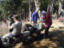 | 【期 日】 2016年02月11日(木) 【メンバー】 CL T/K、SL T/Mz、K/F、T/M 【コースタイム】 JR相模湖駅 08:35発(バス) 〜 石老山入口バス停 08:48 〜 09:08 石老山駐車場 09:09 〜 09:26 顕鏡寺 09:49 〜 10:30 融合見晴台 10:34 〜 11:04 石老山頂上「昼食」12:08 〜 12:51 大明神山 12:52 〜 12:58 大明神展望台 13:05 〜 14:01鼠坂(ねんざか) 〜 14:04ピクニックランドバス停 14:20 〜 JR相模湖駅 記録:T/M(Geographica log) 【コメント】 天候に阻まれ二度も延期になったいわく付の計画がやっと実現した。 行程の短い山だったせいかのんびりとした気分で歩き始める。丁目石と苔のついた岩の多い道を一登りすると顕鏡寺に着く、来てみて知った事だがここはNHKの朝ドラ「花子とアン」に出てくる「白蓮」のお墓がある寺だった。 時間があったのでそちらにも寄ってみた。 中腹の岩場を過ぎるとゆるやかな葉の落ちた雑木林の道となる。所々に硬くなった雪が残っている。融合展望台を過ぎ広い雪の斜面を登ると頂上だった。お天気も良く富士山はじめ丹沢方面がよく見えた。 頂上にはすでに多くのハイカーが休んでいた。我々も暖かい日差しの中でゆっくり昼食をとる。 あまり広くない頂上は後から登ってきた人でいっぱいになってきたので頃合いをみて出発する。 途中の大明神展望台からは相模湖をはさんで対岸に高尾・陣場の山並みを初め秩父、真っ白な南アルプスがよく見えた。 下りも中腹に差し掛かると登りと同じように岩だらけの道がしばらく続く。この時期花はなく雪も少なかったが景色だけはすばらしかった。こんなのんびりした陽だまり山行もいいものだ。 記:T/K,T/Mz |