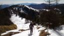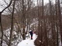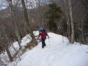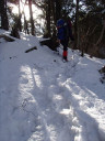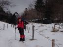 | 【期 日】 2016年2月12~13日 【メンバー】 L;M.U N.K 【コースタイム】 2/12 裂石ゲート9:00―11:30丸川峠12:00―大菩薩嶺14:00―賽の河原避難小屋14:50 2/13 賽の河原8:40―9:00大菩薩峠9:20―10:20石丸峠(牛の寝通り分岐偵察)10:50―小屋平12:30― 13:15上日川峠13:35―裂石ゲート15:00 【コメント】 12日 今回は去年の続きで行きました。 コース取りを考えました。丸川峠までは最後に急峻な登りがありましたが、穏やかな登山 道でした。アイゼンを付けることなく、つぼ足で登りました。 丸川荘は営業しており、小屋に入り休憩しました。小屋番さんは大変しっかりした方で、 色々お話しして下さいました。 私たちのいでたちを見て、「縦走するの」と言われました。「天候について」、「ワカンはど のあたりで使用することになる」ようだとか、気づいたことを親切に、縦走するならばと いう事で、登山道の状態を教えて下さいました。 ネットでよく見る、鍋も陳列されています。キツネが、良く小屋の周りに遊びに来るそう で、とてもかわいいそうです。 注文のココアが出来る間小屋の外にでて写真を撮っていると、昨日の夕方遊びに来たキ ツネでしょうか、雪の中にくっきりとした足跡発見! ココアも出来たので、中に入り、今度は去年発見できなかった牛の寝通り分岐地点につい て尋ねて見ました。総合すると、去年よりもう少し登ると(15分ぐらい)くっきりとし た小さな平坦地に出るという事でした。 お礼を述べて、大菩薩嶺に向かいます。天気はよく晴れていたのですが、丸川荘からの道 は樹林帯に入り、日が差し込まず、天気の良い日にはちょっと、もったいない!大菩薩嶺 に到着すると、素晴らしい景色が見えるはずでしたが、あいにくガスが立ち込めてしまい 何も見えません。 13日 雨の音?ああ~がっくり!と思いこみ6時10分過ぎまで寝ていました。20分に外に出て 見ると、あら?あらら??快☀で、太陽が登るところでした。 素晴らしい朝焼けでした。雨の音と思ったのは、どうやら強烈な風の音だったようです。 やっぱり「外に出て確かめる」が、大切です。身支度をして出発。 賽ノ河原から介山荘までそれはそれは美しく、富士山や南アルプスの山々が見えました。 光岳~甲斐駒まで稜線が見えました。 介山荘からは、いよいよ、リベンジの道です。去年ラッセルした山道は足跡くっきりで、 トレースがあり、何の苦労も労力も無く、石丸峠の標識まで出ました。 さあいよいよです。去年の木々の目印や尾根を思い出し10分ほど登ると、ありました。 少し広々とした場所に、牛の寝通りの標識です。 「やった~!!発見」時間も十分あるので、ここから下りて縦走して行こうかと思いまし たが、帰りの電車分まで往復切符を購入していることを思い出し、泣くなく引き返し、上 日川峠に向かい、昨日のゲートまで下山しました。時間があったので、大菩薩峠登山口ま で歩き、さらに大菩薩の湯まで車道を歩きました。 色々学習になり、そして、とても楽しかったです。 来年3回目は、単独で縦走出来ると、雪山に対して、すごい自信を持てるような気がしま した。でも単独の場合は小屋が開いている土日がザックも軽く、安全でしょう。来年挑戦 したいです。 N.K |
