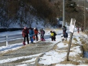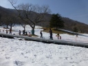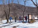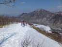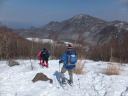 | 【コース】初級コース 赤城山(長七郎岳) 【メンバー】新座山の会 参加者4名 L:T/Ku T/K H/A S/T 【コースタイム】 ビジターセンター9:30→覚満淵→鳥居峠10:00→小沼との分岐10:25→長七郎山山頂11:15→少し広い所(昼食)11:30〜12:10→スキー場13:20→ビジターセンター13:30 (記録:S/T) 初級コースは昨年と同じようなコースを歩きました。昨年よりとても雪が少なく雪庇があった所などはまったくありません。スノーシューを履いて土の上を歩いた所もありました。 |