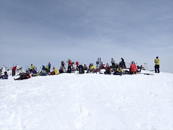 広い山頂で昼食、40名程いました
