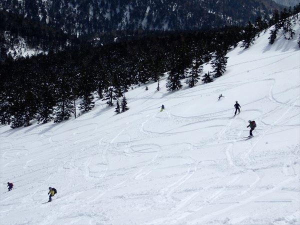 山頂からの東斜面、唯一の新雪滑走斜面でした