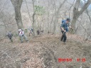 | 【期日】 2016年3月6日(日) 【メンバー】 CL T.O SL S.O I.S T.K S.T M.I M.I S.H S.K T.K M.K J.K Y.U 【コースタイム】 新松田駅発バス 9:50⇒ 田代向バス停 9:30 登山口まで15分車道歩き 登山口 10:00 → 鉄塔 10:50 → 東屋(昼食)11:30〜12:00 最明寺史跡公園 12:20 → 西平畑公園 13:35 → 新松田駅 14:25 【コメント】 気温はすっかり春の様子なのに、雨が降るのか?降らないのか?気をもむような天気。 小田急線新松田駅に13名 が集合。 今日のコースは<松田山みどりの風自然遊歩道> と名前が付いていて松田町の自然探究路になっている。 バスで田代向まで移動して、 中津川(鍋割山南面の寄沢が源流)を渡るとハイキングコース入口がある。川沿いの 河津桜はピンク色が濃くちょうど見ごろ。高松山分岐で、進路を確認して西明寺史跡公園を目指す。五ノ沢まで下り 、そこから30分の急登を息をきらしながら登る。 東屋で昼食。丹沢山系を望むことが出来たが富士山には出会え ずに残念だった。しばらく下った最明寺史跡公園は、池があり桜も咲き始め広場で一息入れるには良いところ。 し ばらく車道を歩き1時間程で西平畑公園に到着。公園は桜祭り開催中で自然館、ミニ鉄道、ハーブガーデンなどの 施設は大勢の人でにぎわっていた。 お花見をした後ここで解散となり駅まで歩く組とバスに乗る組にわかれ帰路についた。 朝の心配だった空模様もいい方にはずれて、富士山を望むことはできなかったが汗ばむ陽気の中、桜を楽し みながらのハイキングになった。 (T/S 記) |