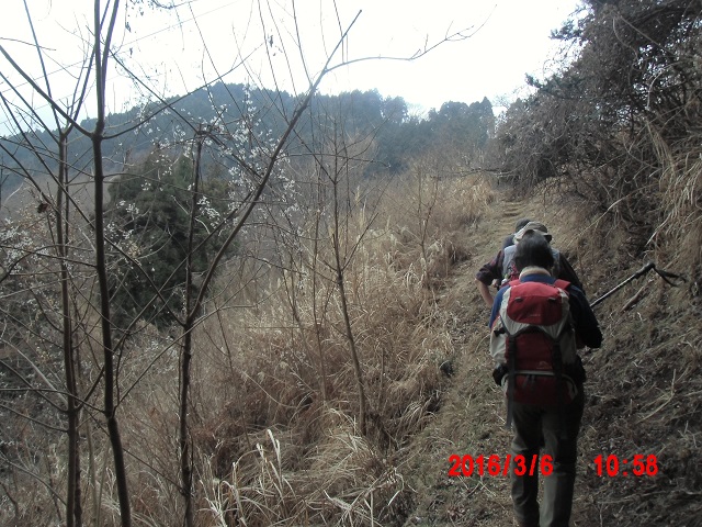 薄茶色の風景の中に枝先に咲く花にホットして再び歩きだします。