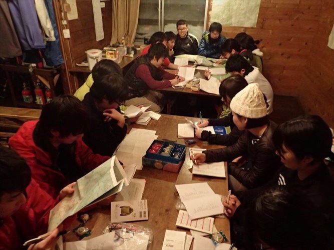 翌日の登山のためのミーティングですね
