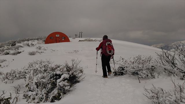 避難小屋の先に山頂が見えました