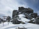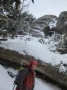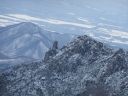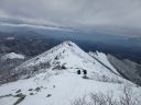 | 【コメント】前夜のうちに瑞牆山荘の駐車場まで行き、車中泊。 夕方には誰もいなかった駐車場だったが、早朝には他に2台くらい停っていて6時くらいまでには10台くらい集結。朝は、気温も低く、雪が締まり、アイゼンも効いて歩きやすかった。 富士見平小屋は無人で荷揚げのために下山する旨の張り紙。 その後、ぐんぐん高度を稼ぎ快適な歩行が続く。 稜線に出ると景色もいいが風が強く、フードを目深にかぶる。 五丈岩が見えると、もう少しで山頂。迫力のある岩だ。山頂の岩陰で強風を避けて昼食。お湯を沸かしてコーヒータイムを楽しむ。 思ったより天気に恵まれて南アルプス、甲斐駒、仙丈、八ヶ岳もよく見える。 しかし、帰りはなぜか長く感じる下山路。稜線から下は似たような樹林帯が延々と続く。 飽き飽きした頃にようやく富士見平に到着。あとは一気に瑞牆山荘駐車場までもどる。 気温が上がり、雪もかなり溶けて途中でアイゼンをはずした。 歩きごたえのある日帰り山行であった。 コメントM・S |