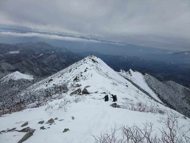 尾根を下山する、向こうには登山者も